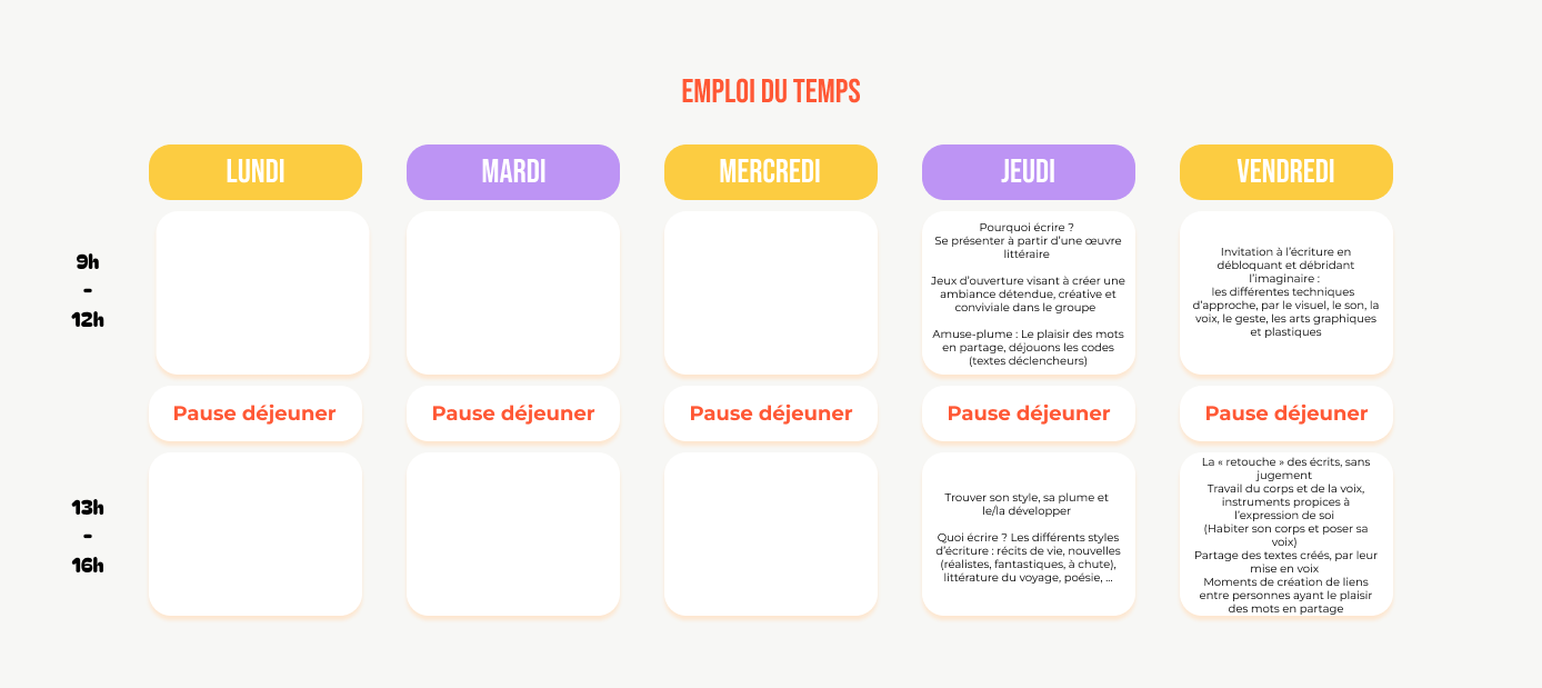 S’exprimer à travers son écriture, la délier, trouver sa plume et la développer, prendre confiance et partager ses écrits.
